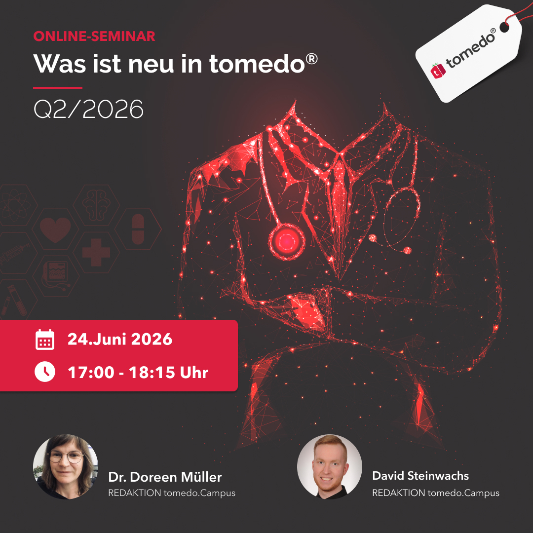 In dem 60-minütigen Online-Seminar informieren Sie unsere Experten Dr. Doreen Müller und David Steinwachs über spannende neue tomedo®-Features. Das Webinar wird wie immer aufgezeichnet und im Nachhinein zur Verfügung gestellt.